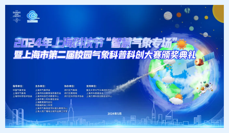春韵未尽,夏风已至,5月26日,上海市第二届校园气象科普科创大赛圆满落下帷幕。这场由上海市气象学会联合上海市科创教育指导委员会、上海市科技艺术教育中心、上海市青少年科普促进会、上海教育报刊总社、中国福利会少年宫、上海市气象局宣传科普与教育中心、上海人民广播电台城市品牌工作室共同主办的盛宴,吸引了全市600余所中、小学校共计3.14万余人次积极参与;活动得到了中国气象学会、上海市气象局和上海市科学技术协会的有力指导。
